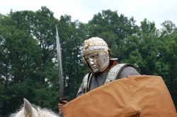 [[Bild:Maske Varusschlacht.JPG|thumb|250px|Nachbildung einer Gesichtsmaske, die bei den Ausgrabungen in Kalkriese gefunden wurde]]
