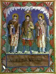 | 21:50, 6. Nov. 2018 | Karl der Grosse mit den Paepsten Gelasius und Gregor I.jpg (Datei) | 176 KB | Karl der Große mit den Päpsten Gelasius und Gregor I. (aus dem ''Sakramentar von Karl dem Kahlen'', um 870) Kategorie:9. Jahrhundert | 1 | |