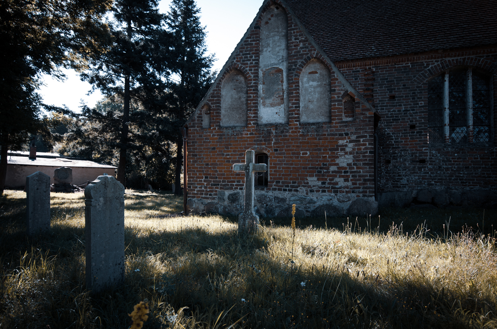 Friedhof an der St.-Johannes-Kirche in Zirkow auf der Insel Rügen.