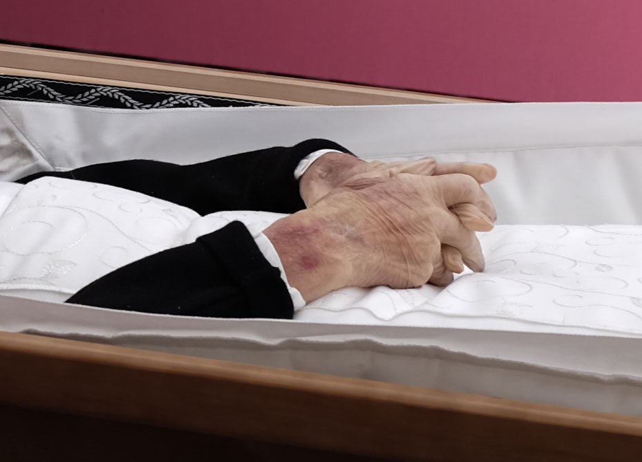 Hände einer Leiche.