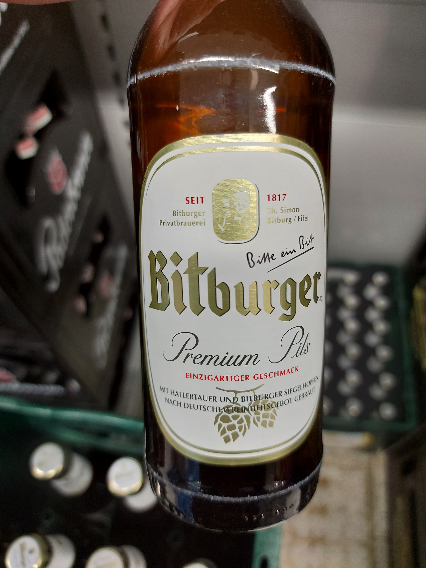 | aktuell | 14:41, 31. Dez. 2021 | 1.387 × 1.849 (559 KB) | Pygmalion (Diskussion | Beiträge) | Bitburger-Bierflasche. {{Meins}} Kategorie:Bier |